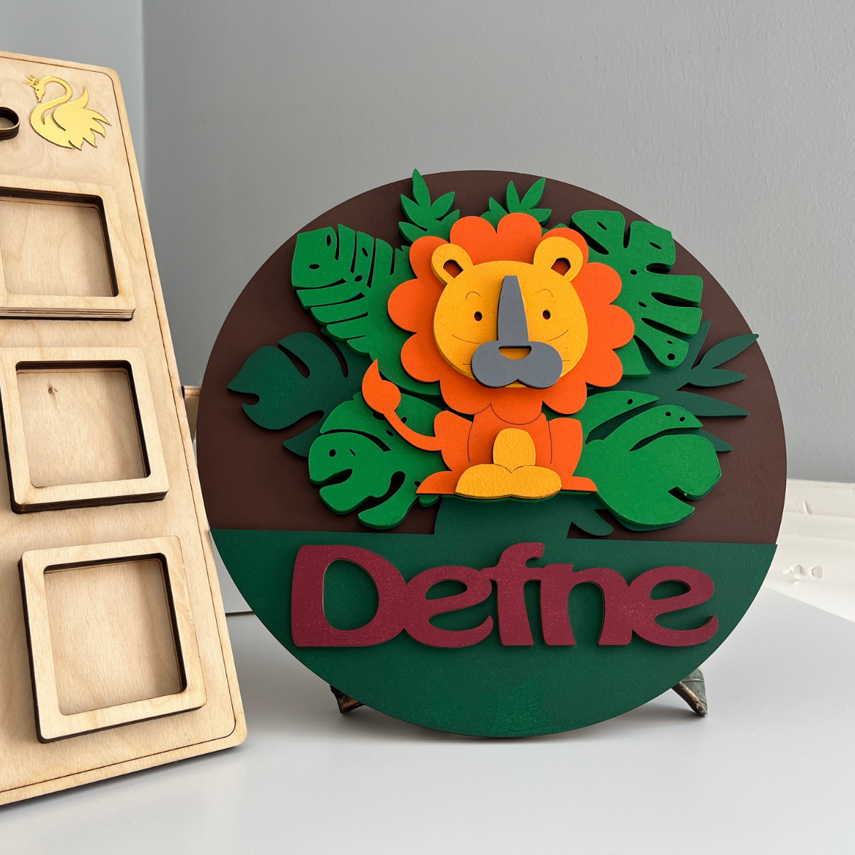 Yeni doğan bebek odaları için birebir, tamamen el yapımı bu özel bebek kapı süsü, kız ve erkek bebekler için özenle tasarlandı. Lazer kesim teknolojisiyle üretilen bu tasarım sevimli detaylarıyla dikkat çeker. Üretimde çocuk sağlığına uygun EN71-3 sertifikalı boyalar kullanılmıştır, böylece güvenle kullanabilirsiniz. Sevimli ve modern tasarım: Aslan ve bitkilerle ön plana çıkan sevimli dekor.