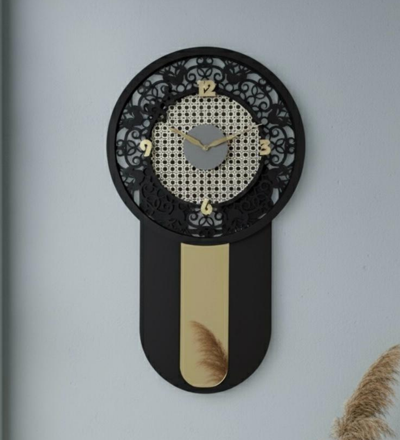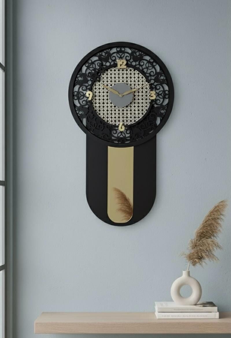 Hazeran Detaylı Dekoratif Nera Duvar Saati 70X40 Siyah-Altın