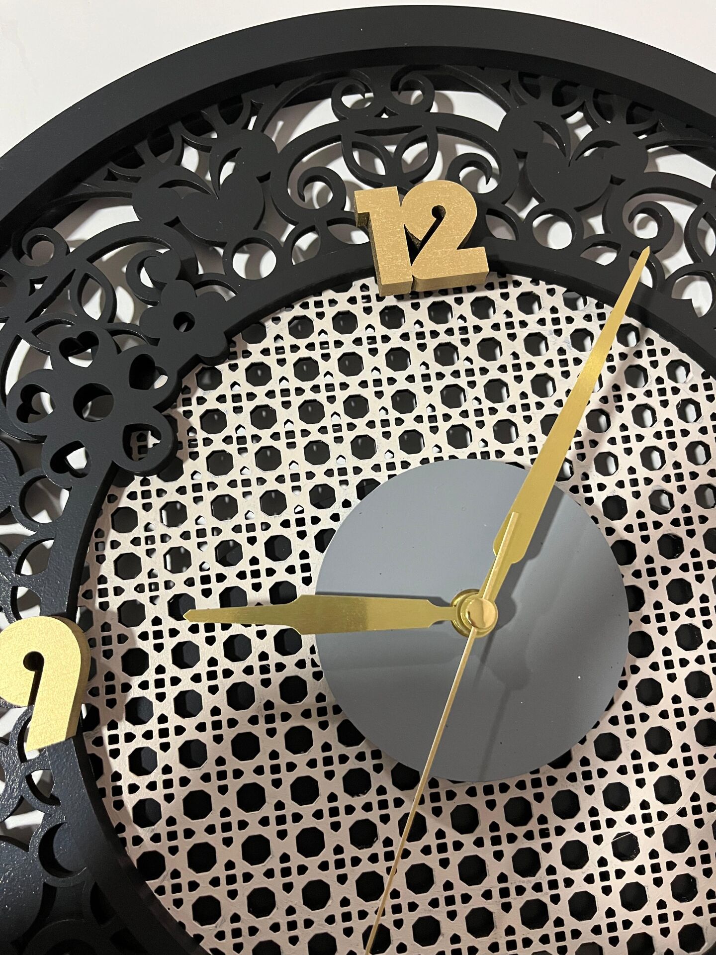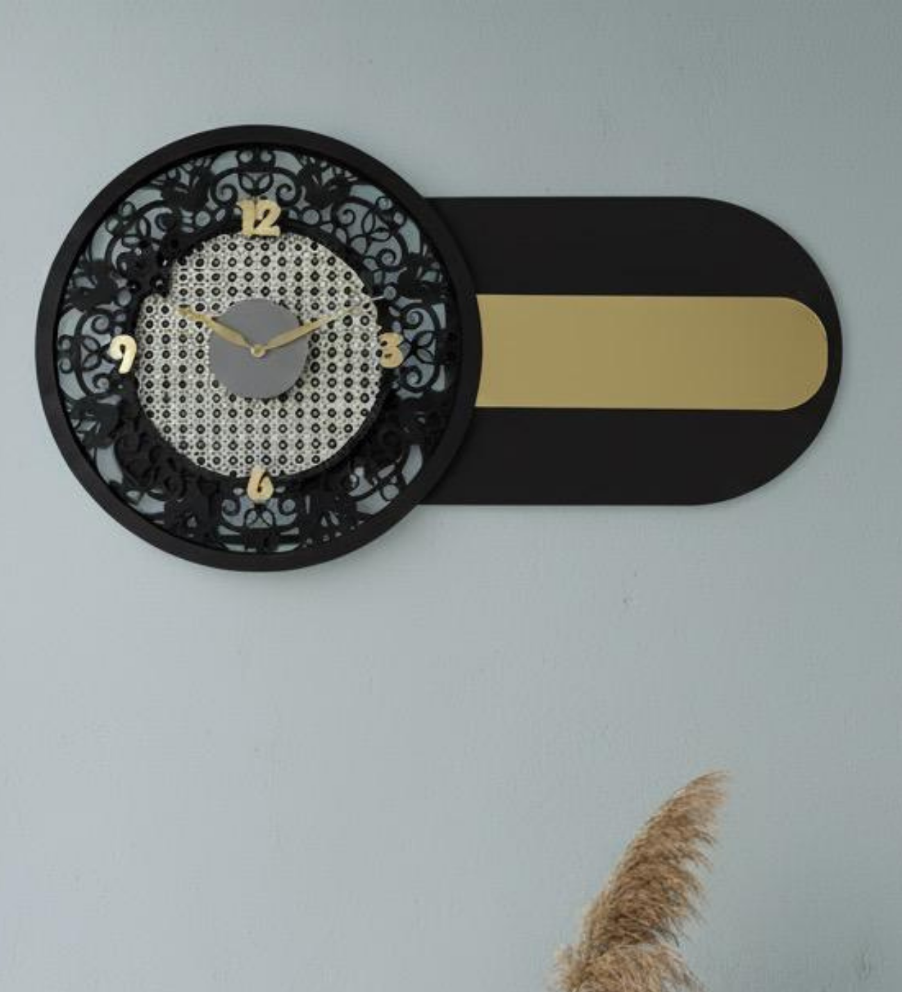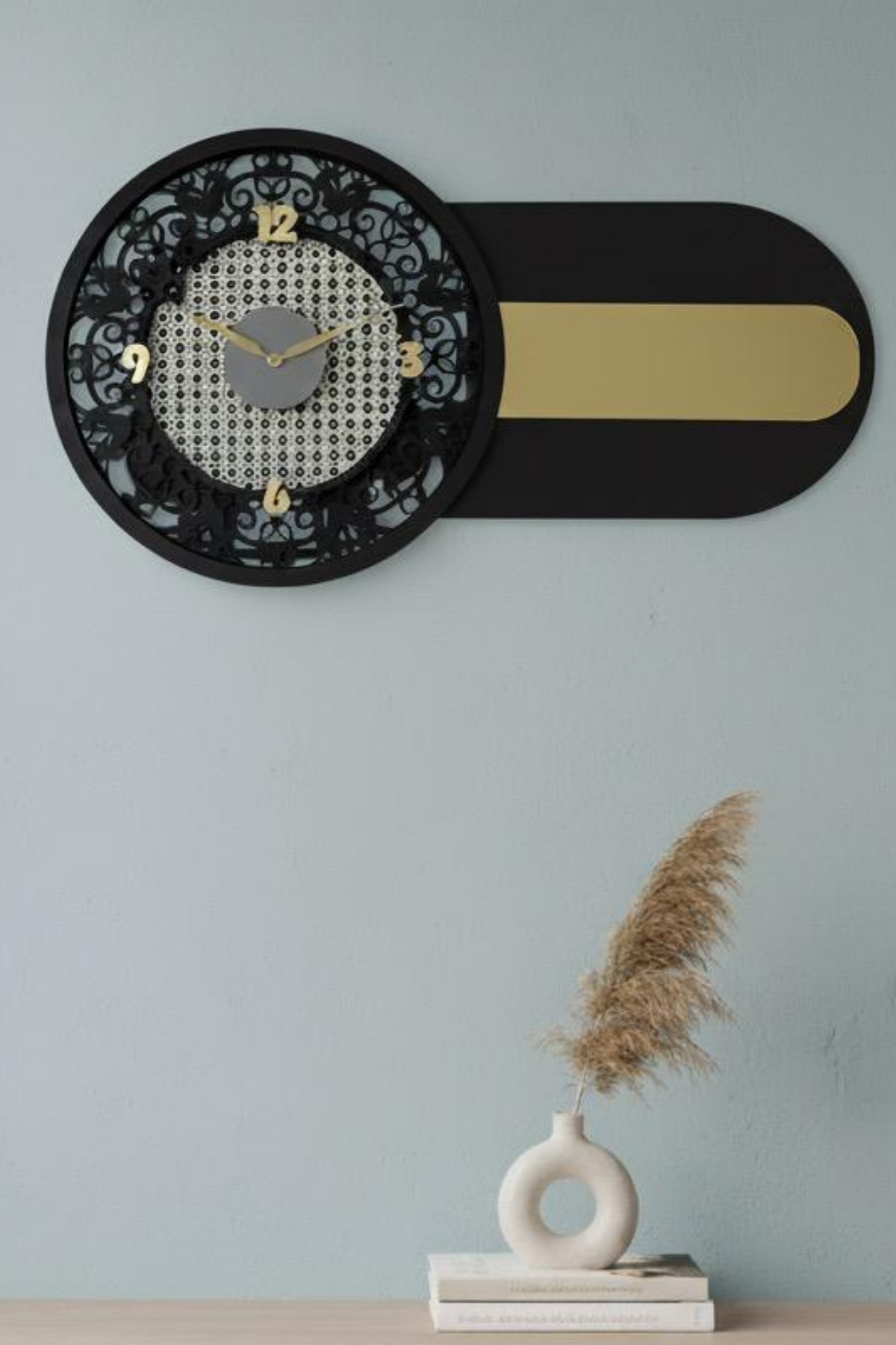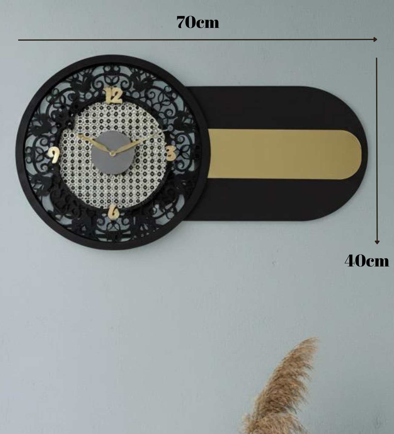 Hazeran Detaylı Dekoratif Nera Duvar Saati 70X40 Siyah-Altın