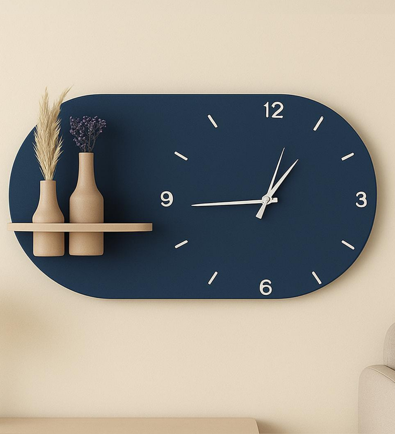 Modern Tasarım Raflı Nera Duvar Saati 60x35 Lacivert NeraKDS01SK Modern Tasarım Raflı Nera Duvar Saati 60x35 Lacivert